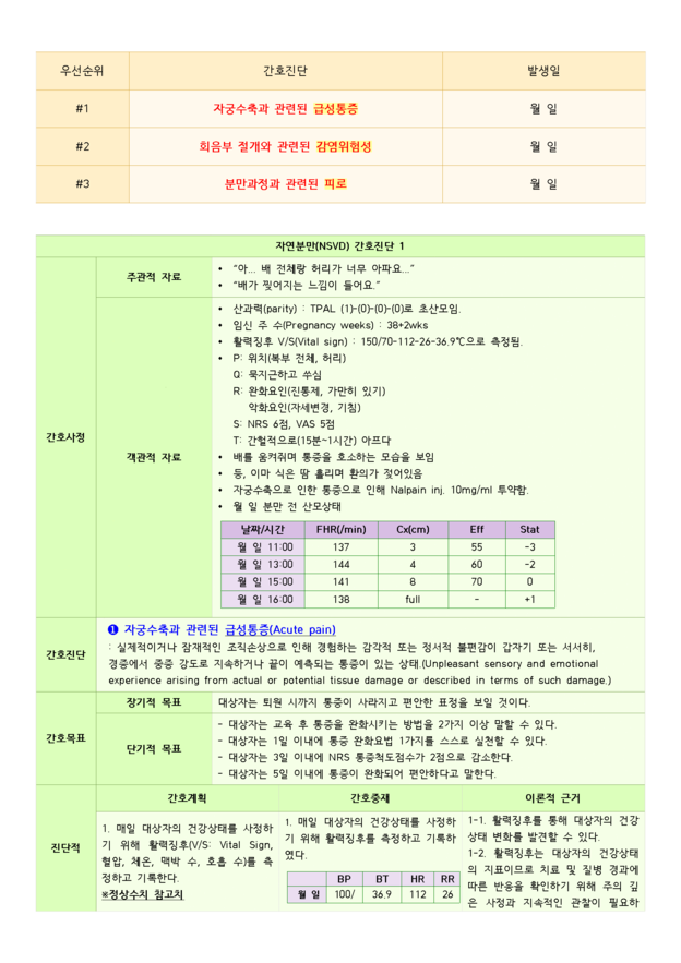 자연분만(NSVD) 간호진단 1